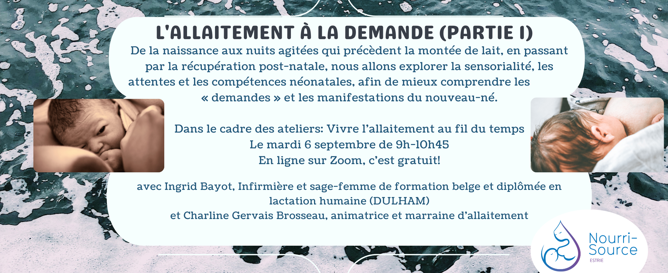 Atelier fait par Ingrid Bayot, infirmière et sage-femme de formation Belge et diplômée en lactation humaine (DULHAM) et coanimé par Charline Gervais Brousseau, animatrice et marraine d’allaitement de Nourri-Source Estrie.