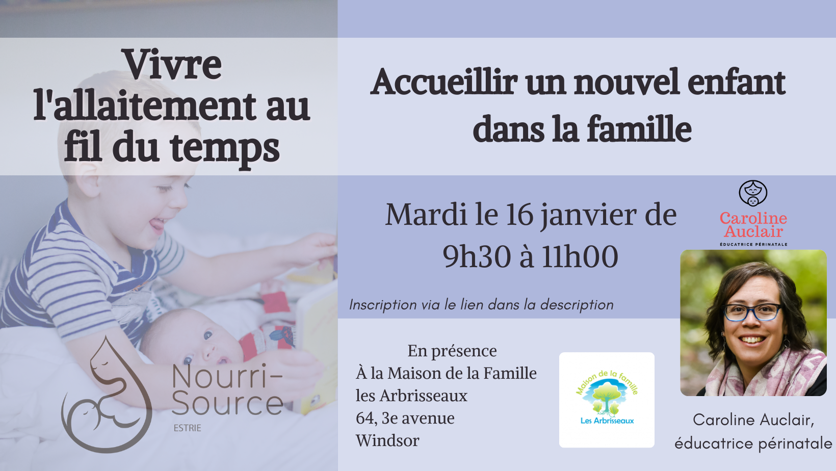 Tu hésites à avoir un 2e enfant, car tu as peur de ne pas l’aimer autant que le premier ? Tu te demandes comment tu vas faire pour répondre aux besoins de plusieurs enfants ? Tu souhaites poursuivre ton allaitement pendant la grossesse ou en tandem après la naissance de bébé ? Viens discuter de ces questions avec d’autres parents qui sont passés par là ou qui vivent la même chose que toi ! L’atelier est animé par une maman de 4 enfants qui évolue dans l’univers de la périnatalité et des familles depuis une quinzaine d’années.