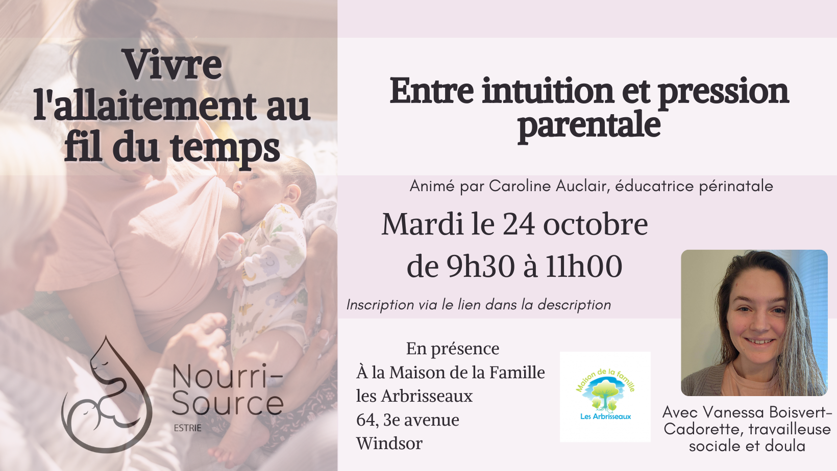 Caroline animera cet atelier avec son invitée Vanessa Boisvert-Cadorette, Travailleuse sociale et Doula.