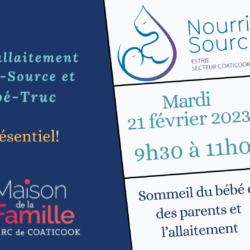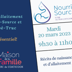 Halte-allaitement Nourri-Source et Bébé-truc Une marraine d’allaitement et les infirmières du CSSS sont disponibles sur place pour répondre à vos questions.