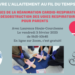 Vivre l’allaitement au fil du temps- bases de la RCR et de la désobstruction des voies respiratoires pour parents Vous devez vous inscrire à la maison de la famille du […]