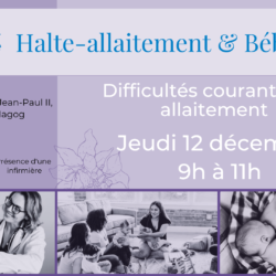 Viens rencontrer une marraine d’allaitement et une infirmière qui prendront le temps de répondre à tes questions sur l’allaitement. Elles pourront regarder, avec toi, ton allaitement sans jugement et avec […]