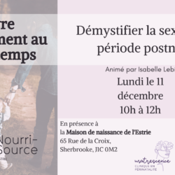 À Windsor: L’atelier vise à démystifier les diverses réalités en ce qui concerne la vie sexuelle en contexte d’allaitement. Il permettra d’accompagner les personnes qui expérimentent l’allaitement afin de répondre […]