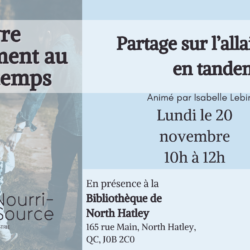 L’allaitement en tandem vous intéresse? Vous avez des questions, aimerez partager sur le sujet? Venez à la rencontre de Julie, mère de deux enfants et sage-femme, qui a vécu l’allaitement […]