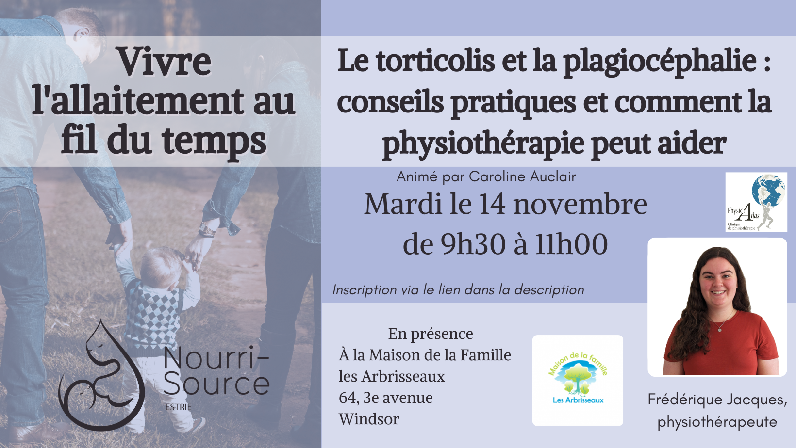 maison de la famille les arbrisseaux 64 3e Avenue, Windsor, QuébecHalte Parent-bébé est une halte-allaitement où vous pouvez venir rencontrer une marraine d’allaitement, une infirmière et d’autres familles. On vous y attend!